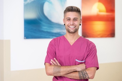 Zu Beginn erzählte er von seinen persönlichen Erfahrungen und warum er sich für diesen Beruf entschieden hat. Man hat gemerkt, wie viel Interesse er für diesen Job hat, als er darüber gesprochen hat und seine Augen leuchteten. Danach erläuterte er den Aufbau des Hebammenstudium und welche Inhalte dort behandelt werden. Dabei erklärte er, dass das Studium nicht nur aus Theorie, sondern viele praktische Einheiten beinhaltet, in denen man das Gelernte direkt anwenden kann. Außerdem erzählte er, was er als Hebamme alles erlebt und wie unterschiedlich jeder Arbeitstag sein kann. Besonders spannend war, dass er nicht nur über die schönen Seiten gesprochen hat, sondern auch ehrlich über schwierige Situationen, die in diesem Beruf vorkommen können.