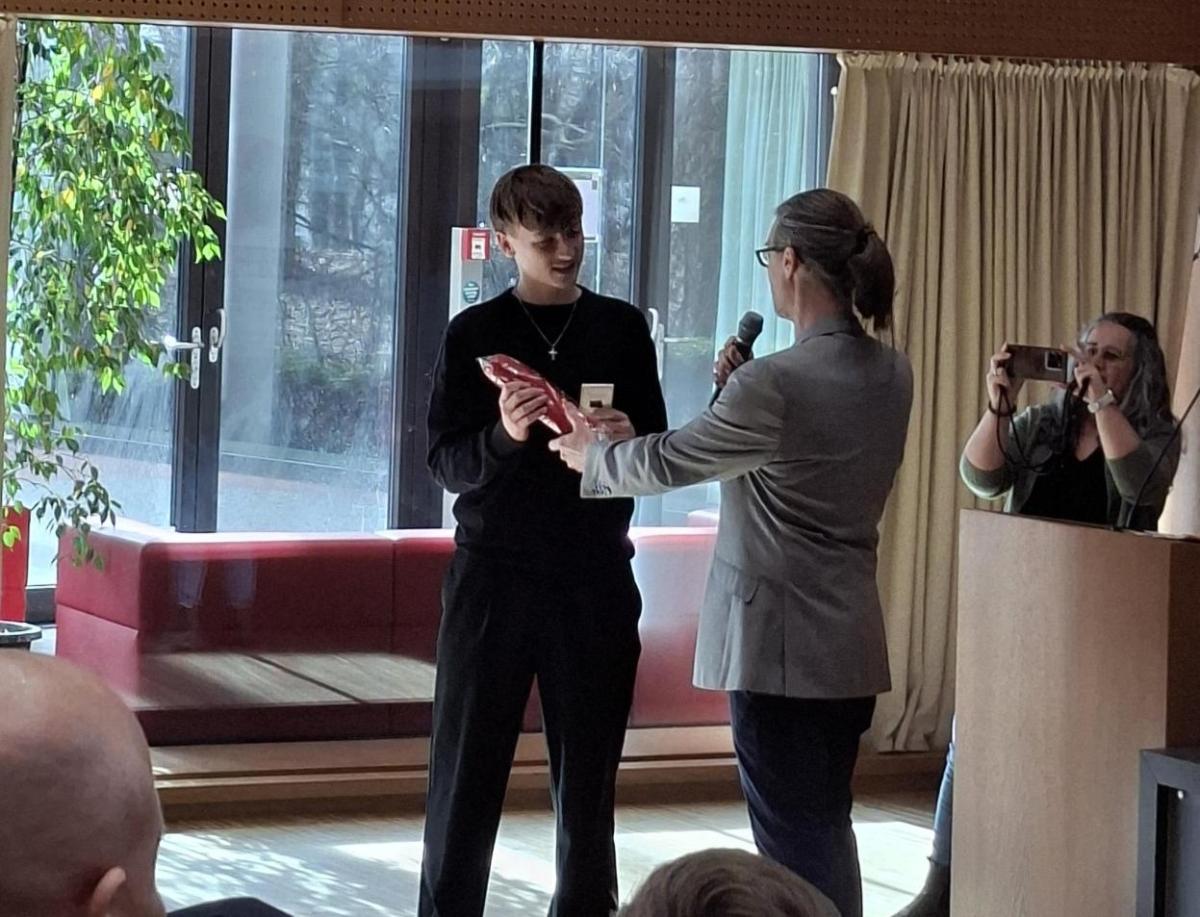 Am Ende des kurzweiligen und informativen Vormittags überraschte Umwelt- und Klimalandesrat Stefan Kaineder von den Grünen die Schüler:innen im Audimax mit einem Kurzbesuch. Nach Verlosung der Preise des Gewinnspiels freute sich Jonas aus der 7kh über Schokolade und einen FH-Schirm, bevor es zurück in den Meierhof (Borg Hagenberg) ging. So endete ein kurzer Abstecher in die Welt der FH für die Schüler:innen des Borg Hagenberg.