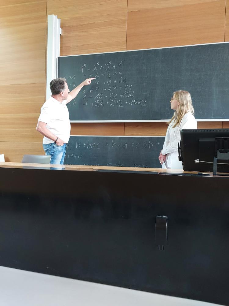 Am Vormittag startete Univ.-Prof. Dr. Gerhard Larcher mit dem Themengebiet „Ein paar Highlights aus dem Bereich der Zahlentheorie“ in Form einer 30-minütigen Vorlesung. Nach der Vorlesung fanden sich die Teilnehmer:innen zum selbstständigen Arbeiten in Kleingruppen zusammen. Betreut wurden sie von Student:innen der JKU.