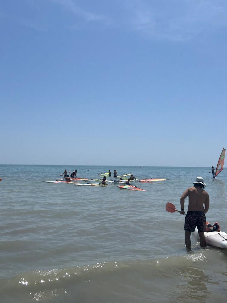 Einige Schülerinnen und Schüler hatten zum ersten Mal die Gelegenheit, sich im Windsurfen auszuprobieren. Nach einer theoretischen Einführung am Simulator durften die Kursteilnehmer bereits am zweiten Tag die Wellen genießen. Der starke Wind erschwerte zwar die ersten Versuche, auf das Brett zu steigen, sorgte jedoch gleichzeitig dafür, dass auch andere Wassersportarten wie Stand-Up-Paddling und Bodysurfing ausprobiert werden konnten. Am Ende legten einige Schülerinnen und Schüler erfolgreich die Theorieprüfung ab und erhielten den Windsurfen-Grundschein.