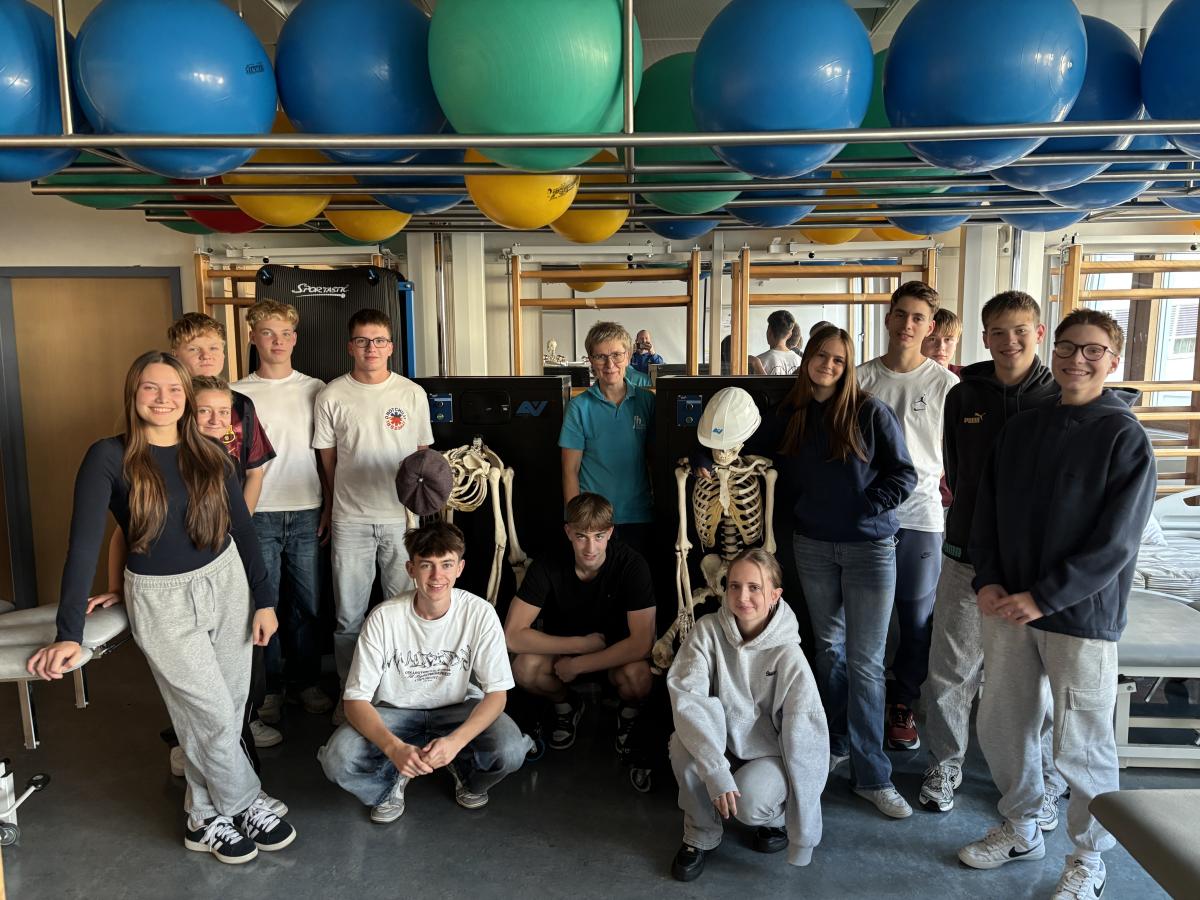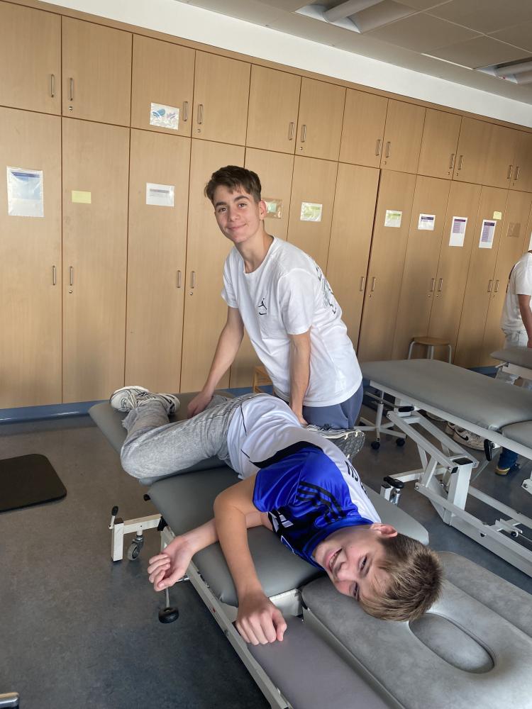 2. Physiotherapie – Bewegung ist LebenDie zweite Exkursion führte in den Fachbereich Physiotherapie. Dort lernten die Jugendlichen, wie vielfältig das Tätigkeitsfeld von Physiotherapeut:innen ist – von der Rehabilitation nach Verletzungen bis zur Prävention. Praktische Übungen zur Körperwahrnehmung, Beweglichkeitstraining und Massage machten den Nachmittag besonders kurzweilig. Besonders interessant war das mehrdimensionale Denken, beispielsweise in Bezug auf die vielen unterschiedlichen Dehnmethoden, was für die Schüler:innen beeindruckend war.