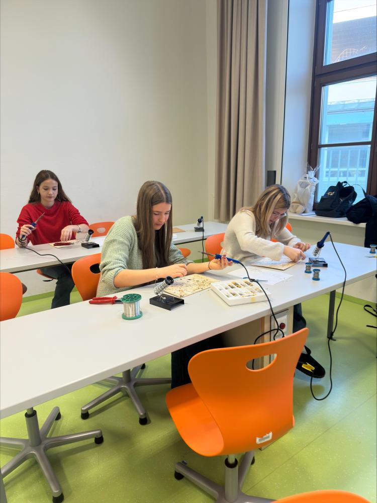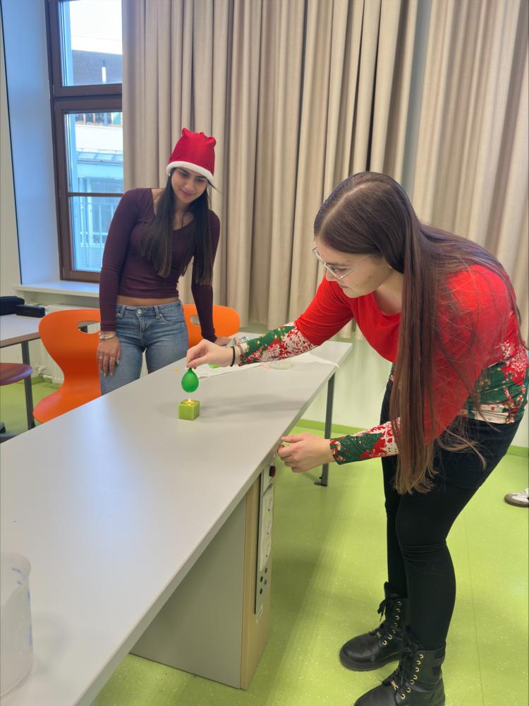 Auch der Nawi-Zweig bot mehrere interaktive Stationen an, wobei beim Löt-Workshop weihnachtliche Motive wie Sterne und Schneemänner entstanden. Natürlich wurden auch Kekse gebacken und verziert, außerdem wurde - unter der Aufsicht Professor Trenkwalders - essbares Glas aus Zucker hergestellt. Für eine gemütliche Atmosphäre sorgten frisch gebackene Weihnachtskekse und Lebkuchen, die im Vorraum des Festsaals bereitgestellt werden.Der Workshop erwies sich als bereichernder Austausch und sinnvolle Alternative zum üblichen vorweihnachtlichen Schullalltag und zeigt, wie abwechslungsreich Lernen gestaltet werden kann.