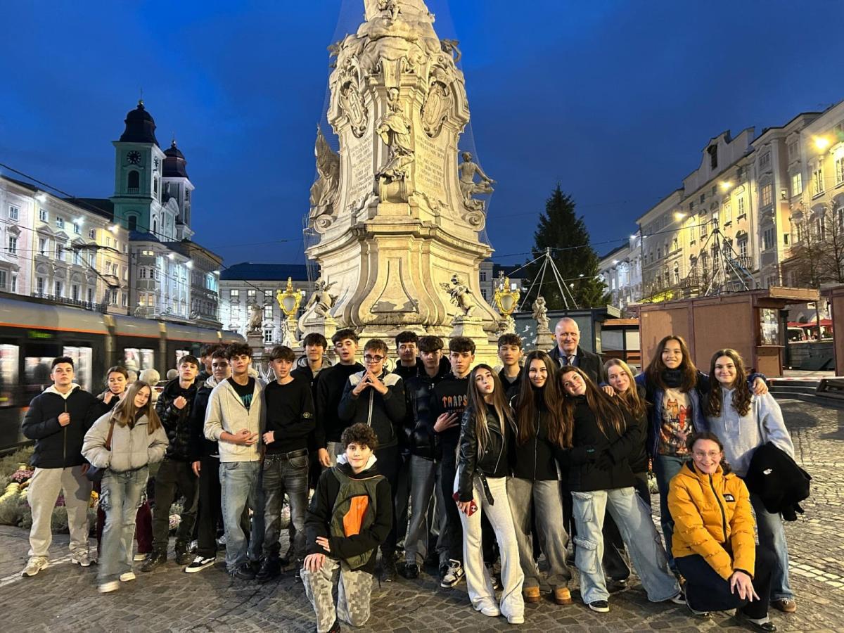 Die Schüler des BORG Linz hießen die italienischen Gäste am Linzer Hauptbahnhof willkommen. Anschließend ging es in das Restaurant am Graben, wo der Inhaber Mario Peschel die Gruppe mit österreichischer Kulinarik willkommen hieß. Ein erster Aperitif rundete den ersten Abend ab und bot Raum für neue Gespräche, Menschen und erste Freundschaften.