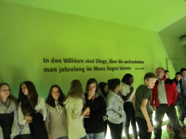 Nach dem Mittagessen und einer kurzen Pause in den Zimmern machten wir uns auf den Weg zum Nationalpark Kalkalpen. Da es regnete und es auch ziemlich kalt war, gab es eine Art Ersatzprogramm im Besucherzentrum: einen Naturfilm, ein Quiz und eine Übung, bei der wir ausgestopfte Tiere Fußspuren und Bildern zuordnen mussten. Das hat nicht wirklich Spaß gemacht.
