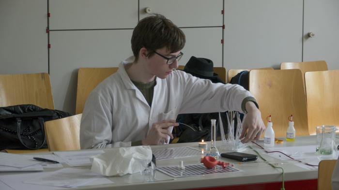 Am Nachmittag des 27. fand der erste Teil des Bewerbes statt - der 3-stündige Theorieteil. Verschiedenste Aufgaben aus allen Bereichen der Chemie, die das Schulniveau oft weit überstiegen, erlaubten den Nachwuchs-ChemikerInnen ihre in den Kursen erworbenen Kenntnisse und Fähigkeiten zu zeigen.