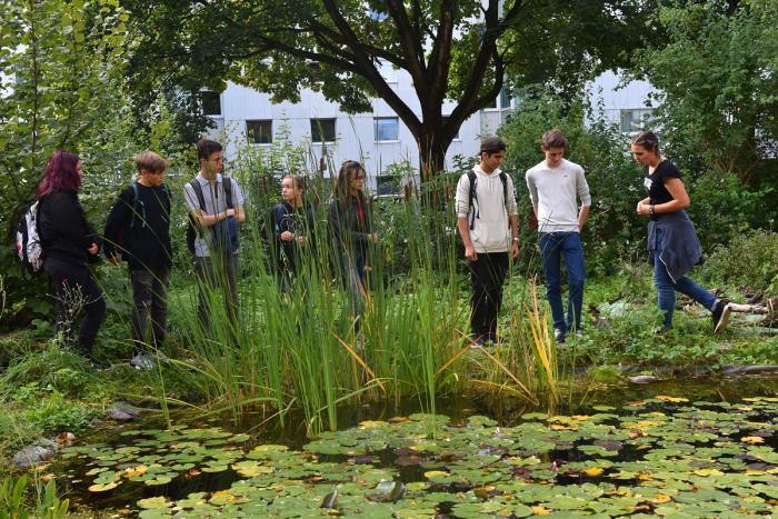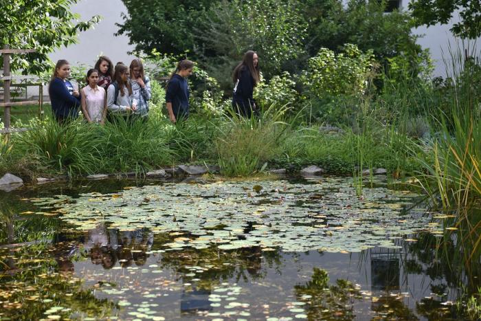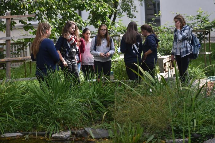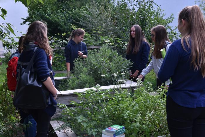 Eine weitere Gruppe wurde durch den Schulgarten geführt. Wo es möglich war, wurden die SchülerInnen der 5. Klasse ins Programm mit eingebunden und durften mitexperimentieren.