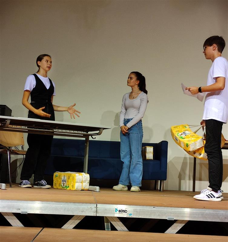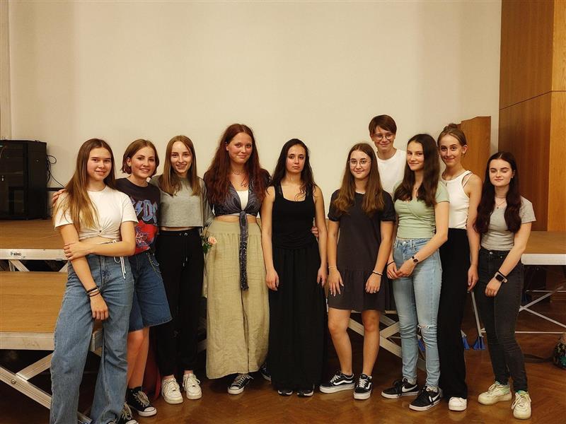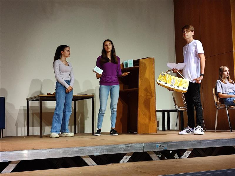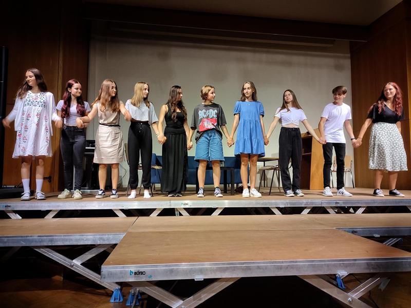 Den engagierten Schüler*innen gilt es natürlich auch zu danken, denn so viel Text einzustudieren geht auch nicht im Handumdrehen, sondern erfordert viele Stunden Lern- und Probezeit. Dankeschön an Anna Langwiesner, Annika Pirngruber, Diana Kastner, Helene Wöckinger, Marlene Landl, Michaela Steininger, Miriam Stoderegger, Simon Gierlinger, Victoria Puchner (alle 5k) und Viktoria Puchmayr (6k) für euer Engagement.