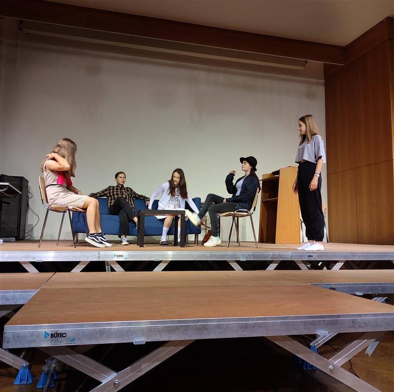 Am Mittwoch, den 29.06.2022, lud die fünfte Klasse des Hagenberger Kommunikationszweiges (mit einem Gast aus der 6k) zu einem Abend voller Kommunikationsprobleme in den Festsaal des BORG Linz ein. Die Verständigung zwischen Publikum und den Schauspieler*innen funktionierte jedoch glücklicherweise reibungslos. Der Abend stand ganz unter dem Motto: „Wir müssen reden!“ Und genau das wurde auch gemacht: Geredet und gelacht.