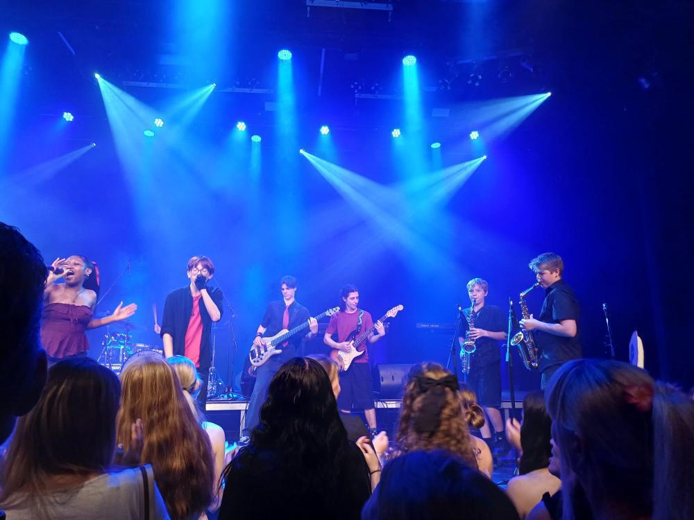 Dank freundschaftlicher Beziehungen, die ich mir zum Vorteil machte, um mir Eintritt ins »Backstage«, also den dem Publikum unzugänglichen Garderoben neben der Bühne, zu verschaffen, konnte ich einige der P-Schüler:innen kurz vor und unmittelbar nach ihren Performances interviewen und so viel über ihre ganz persönlichen Erlebnisse auf der Bühne in Erfahrung bringen. Raphael Heigl (5P) kommentierte das Konzert schlicht und ergreifend als »geilster Scheiß jemals«. »Es war einfach ein unbeschreibliches Gefühl auf der Bühne zu stehen und die Leute für dich jubeln zu hören. Gleichzeitig auch noch geile Musik zu spielen, hat das Ganze auf ein noch krasseres Level gebracht.«