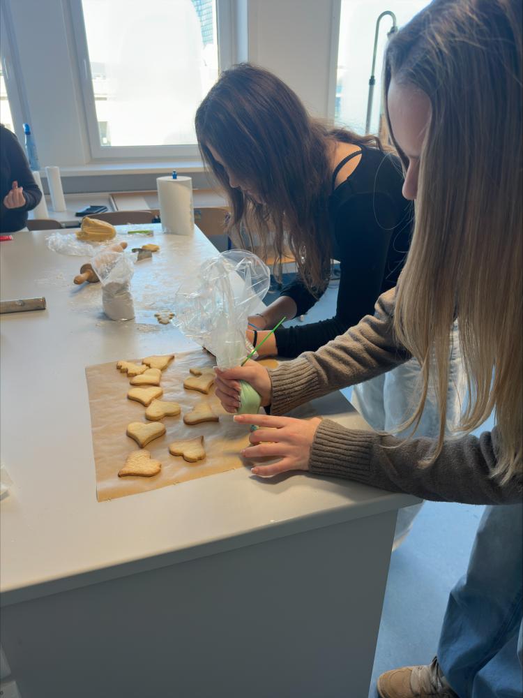 Auch der Nawi-Zweig bot mehrere interaktive Stationen an, wobei beim Löt-Workshop weihnachtliche Motive wie Sterne und Schneemänner entstanden. Natürlich wurden auch Kekse gebacken und verziert, außerdem wurde - unter der Aufsicht Professor Trenkwalders - essbares Glas aus Zucker hergestellt. Für eine gemütliche Atmosphäre sorgten frisch gebackene Weihnachtskekse und Lebkuchen, die im Vorraum des Festsaals bereitgestellt werden.Der Workshop erwies sich als bereichernder Austausch und sinnvolle Alternative zum üblichen vorweihnachtlichen Schullalltag und zeigt, wie abwechslungsreich Lernen gestaltet werden kann.